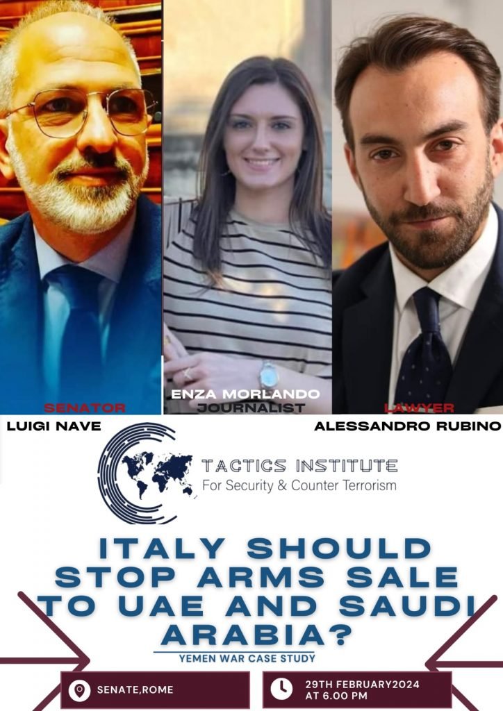 Speakers called on Italian Government to halt arms export to both countries due to their ongoing involvement in the war in Yemen and other regional conflicts.